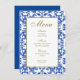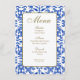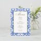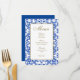 Estos menús Bodas de estilo Amalfitano azul y blanco presentan un elegante diseño de inspiración italiana, exclusivo para nuestra tienda. Le permiten marcar a su boda de manera elegante y elegante, inspirándose en la estética mediterránea tradicional. Ya sea que su boda esté en Italia, Grecia, lugares cercanos, o simplemente quiere infundir esta esencia en su celebración, nuestros menús italianos al estilo Amalfi están hechos a la medida para eso. Son totalmente de personalizable, lo que te permite personalizar con tus propios platos. Para personalizar, simplemente haga clic en 'Personalizar esta plantilla' y comience. Si está buscando una decoración boda, papelería o regalos a juego en este tema, explore nuestra colección completa, una manera fácil y agradable de preparar todos los detalles para su día especial. Para cualquier petición o consulta, no dude en ponerse en contacto con nosotros.