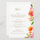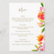 Menú Boda de estilo floral acuarela rosa naranja chic