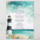 Bonita carta boda con faro náutico blanco y negro, pez estrella y conchas. Ideal para un boda. Las palabras se pueden cambiar para adaptarlas a sus propios detalles o requisitos