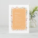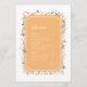 Esta suite boda de moda con su cálida paleta de colores soleados, su letra manuscrita y sus delicados arreglos de flores silvestres tiene un aspecto atemporal y sofisticado que impresionará a sus huéspedes y le ayudará a hacer su día especial inolvidable. Este menú boda floral coordinado, que se muestra aquí en el soleado naranja de melocotón con un amplio borde de flores silvestres, proporciona una plantilla para añadir fácilmente sus selecciones de menú, iniciales y fecha de boda. Busque ID1023 para ver todos los productos de este conjunto de bodas.