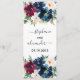 Hermosas flores acuáticas en colores marina, borgoña, blanco y moderno guión de caligrafía. Perfecto para boda o evento especial de estilo. Personalizado con su propio texto especial, y utilícelo para el fiesta o evento de su elección. Los artículos coincidentes están disponibles en nuestra tienda.