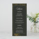 Bonita carta boda diseñada con un elegante patrón dorado floral sobre un fondo verde profundo del bosque. Perfecto para una temática boda sofisticada o inspirada en el jardín.