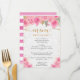 Menú Boda de flores rosadas acuarelas