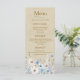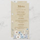 Nuestro menú Flor silvestre es una maravillosa manera de celebrar y compartir su alegre evento. Las magníficas flores silvestres de color azul pintadas son perfectas para primavera o verano, y cualquier boda con temática de jardín.
