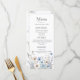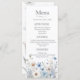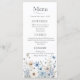 Nuestro Moderno Menú de Flores Silvestres es una maravillosa manera de celebrar y compartir su alegre evento. Las magníficas flores silvestres de color azul pintadas son perfectas para primavera o verano, y cualquier boda con temática de jardín.