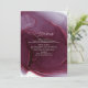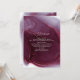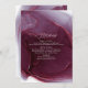 Un fondo abstracto que recuerda a la tinta líquida en tonos de burdeos profundos a cian y blanco es el telón de fondo para un texto de escritura elegante a mano y diseños modernos en las piezas de esta hermosa suite boda. El menú boda que se muestra aquí incluye lo anterior y una plantilla para agregar su propia información de evento pertinente. Buscar ID762 para ver todas las piezas de coordinación de este conjunto.