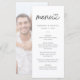 Menú de boda minimalista moderno simple con tu foto favorita en la parte posterior. Clásico y guión con tipografía de corazón conectante.
