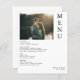 Celebra a tu boda con estilo con este menú Boda de fotos para parejas amigables con el presupuesto! Con un diseño moderno que incluye fotos, este menú añade un encanto de temporada a su recepción, mientras mantiene los costos a un precio asequible. Características: - Hermoso diseño fotográfico - perfecto para cualquier ceremonia boda - Elegantes fuentes modernas - elegantes pero fáciles de leer - personalizable completo - personaliza con tus artículos de menú, nombres de pareja y fecha boda. Este menú es perfecto para todo tipo de eventos bodas, este económico pero elegante menú nupcial le da un toque acogedor y festivo a su día especial.