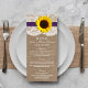 La colección rústica de girasoles es un impresionante diseño con un bonito efecto rústico de burrega con un romántico efecto de encaje blanco vintage con un impresionante girasol y cinta violeta. Estos menús pueden ser personalizados para su ocasión especial y harían la plantilla perfecta para menús bodas, menús para duchas de novias, menús para fiestas de compromiso, menús para fiestas de cumpleaños y mucho, mucho más. *Tenga en cuenta que Zazzle sólo vende productos impresos, por lo que este artículo no tiene ningún material de color burlap, lace, girasol o cinta adhesiva. VER ELEMENTOS DE COINCIDENCIA PARA ESTA COLECCIÓN