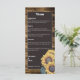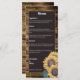 Personalice un menú elegante para su recepción con este menú rústico de Bodas girasoles. El diseño de los menús incluye un trío de girasoles acuáticos con un fondo rústico de madera. Personalice con sus opciones de menú, nombre de novia y novio y fecha de boda. Papel boda adicional disponible con este diseño.