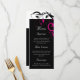 Audaces y llamativas tarjetas modernas de menú magenta y boda negro con acentos blancos, con delicado fondo de hojas de desplazamiento giratorio. Personalizar en línea con los detalles del menú de la recepción de bodas.