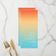 El fondo de las piezas de este conjunto de bodas minimalistas es un gradiente de colores llamativo desde el naranja de mandarina hasta la mantequilla amarilla y el turquesa. La carta del menú boda que se muestra aquí presenta un diseño elegante y moderno y una fuente sans serif contemporánea para añadir a su atractivo. Agregue fácilmente las selecciones de menú, las iniciales y la fecha de boda utilizando la plantilla proporcionada. Busque ID741 para ver el conjunto completo de productos coincidentes en el cielo tropical o elija una de las otras combinaciones de degradados disponibles para adaptarse a su paleta de colores boda.