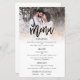 Menú Boda de guión gráfico de presupuesto. Un tamaño MÁS GRANDE 5,5" x 8,5" a un precio de presupuesto, Una tipografía de conjunto informal en negro para el menú principal de la rúbrica que complementa el resto del texto que se puede personalizar fácilmente. Reemplace la foto de ejemplo con su propio favorito.