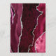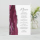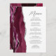 Este elegante y moderno menú boda incluye una pastilla color rojo burdeos con un purpurina de plata falso. El texto del personalizable combina el guión de escritura a mano gris carbón y sans serif en un fondo blanco. El diseño de agate de color burdeos y plata se repite al revés.