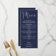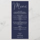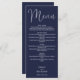 Este elegante menú boda de guiones azul marino se puede personalizar con todo el menú especial del día de la boda, nombres y fecha especial. Diseñado por Thisisnotme©