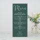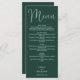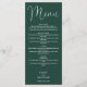 Este elegante menú de boda de guiones de color verde esmeralda se puede personalizar con todo su menú especial del día de la boda, nombres y fecha especial. Diseñado por Thisisnotme©