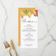Celebre la belleza de la temporada con este menú Boda de las hojas de otoño, diseñado para darle un encanto rústico y acogedor a su celebración de otoño. Con delicados ilustraciones de ricas y coloridas hojas de otoño en rojos, naranjas y dorados profundos, la carta completa perfectamente las bodas caseras con un ambiente acogedor y romántico. La elegante tipografía y la cuidada disposición de los platos presentan cada plato con sofisticación, guiando a los huéspedes por sus platos cuidadosamente seleccionados. Imprimido sobre el material de cartón premium para un ambiente lujoso, es un atractivo añadido a su escapada que mejora su decoración y crea una experiencia gastronómica memorable para sus huéspedes.