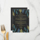 Estas tarjetas de menú son perfectas para cualquier pareja que planee una moderna celebración boda. El diseño presenta un elegante fondo de pizarra con hojas de follaje dibujadas a mano en moda en tonos azules y verdes. El sencillo diseño puede ser personalizado para su evento especial y será el menú perfecto para cualquier fiesta floral, incluyendo duchas de novias, compromisos, duchas de bodas, fiestas de cumpleaños y mucho, mucho más.