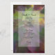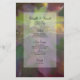 El menú de bodas de roble natural Hydrangea Fall Wedding se puede personalizar con los nombres de la novia y el novio, la ubicación del lugar de celebración y los detalles de la comida que se servirán en su bosque a lo largo del almuerzo de setiembre, octubre o noviembre otoño con ducha de novias, cena en la recepción matrimonial o brunch post boda. Este menú personalizado de boda otoñal de temporada presenta una fotografía de exposición múltiple de hojas de hidrato de roble verde amarilla y púrpura en el árbol.