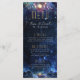 Menú Boda de la Fase Celestial de la Luna. Es como si tu menú estuviera escrito en las estrellas. Déjate llevar por una elegante y divertida manera de ver las opciones culinarias de la noche con este menú metafísico azul y dorado.