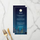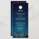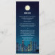 Se trata de una sofisticada carta en rack para aquellos que tengan un evento especial, ceremonia privada o salida en cualquier ciudad urbana. Cuenta con un horizonte urbano en una noche estrellada con la luna subiendo sobre un menú personalizado. Los nombres de la pareja están al revés con la fecha del evento debajo. Disponible con productos coincidentes. com com com com com.