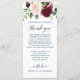 Menú de dos caras y tarjetas de agradecimiento! Usar como un menú eliminando elementos de la parte posterior. O editar fácilmente el menú y gracias colocar la tarjeta! Este diseño cuenta con un precioso guión y un hermoso ramo de flores de Borgoña. Vea toda la colección para ver más elementos coincidentes.