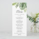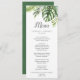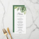 Esta carta de menú de cena boda de palma tropical silvestre es perfecta para una boda en la playa o en el destino. El diseño presenta una exótica variedad de hojas de plátano de palmera de color agua verde, helechos, follaje, plantas botánicas y vegetación para un ambiente tropical de verano. Este menú se puede utilizar para la recepción de bodas, la cena de ensayo o cualquier evento.