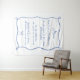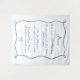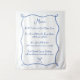 Menú Boda de tela azul trenzado a mano con letra de estilo manuscrito.