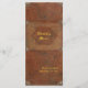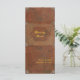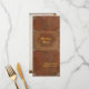 La parte delantera se parece a la cubierta de cuero de un libro viejo, y el menú como está escrito en una de las páginas.