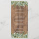 Presente su menú de recepción de manera hermosa con esta tarjeta de menú botánico con vegetación de eucalipto, flores blancas, acentos dorados y textura de madera rústica.