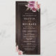 Decoración floral botánica acuarela en color violeta, morera, rosa polvoriento y melocotón sobre fondo de grano de grano de grano de grano de grano oscuro, moderno y elegante, magníficas tarjetas de programa de bodas para la boda rústica botánica en otoño e invierno Ver todas las piezas a juego en colección.