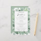Menú Boda de marco Eucalyptus Exprimido con presupuesto. Un precio económico de 5,5" x 8,5", en una elegante stock de 110 lb LINEN - para un ambiente de lujo a gran valor, es perfecto para menús, así como invitaciones y programas, etc. Esta alternativa de tamaño de presupuesto también está disponible en otras opciones de papel. El material de la tarjeta SEMI-GLOSS de 110 lb es aproximadamente del mismo grosor que una postal, por lo que también funciona bien para las invitaciones. El papel FELT de 100 libras es de color buff, NO blanco, por lo que añade un toque rústico. El material de papel MATTE 80lb es blanco brillante, para impresión crujiente, ideal para menús y programas, mientras que el papel SATIN de 80 libras es delgado y liviano, ideal para gabinetes. POR FAVOR, TENGA EN CUENTA QUE LOS ENVELOPES OPCIONALES SON UN POCO MÁS GRANDES DE TAMAÑO A 6,75" x 9" aprox. Un borde de eucaliptos verdes se aleja de las palabras. El encabezado principal, Menú, está en un estilo manuscrito y el resto del texto que puede personalizar fácilmente. En la parte trasera hay un verde salado que sirve de coordinación.