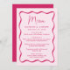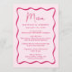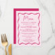 Añada un toque vintage a su fiesta de compromiso, cena de ensayo o recepción de bodas con este moderno menú boda de marco ondulado rosa. El diseño muestra los nombres de la pareja, la fecha boda y las opciones de menú con letras en negrita y rosa rodeadas por un borde de marco ondulado rosa oscuro contra un fondo rosa claro. El menú retro boda coordina con nuestra colección Modern Wavy Frame boda.
