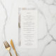 Elegante carta de menú de bodas con un diseño simulado 3D esculpido en la parte posterior con acentos de marfil fluidos. La paleta de colores blanquecinos y el estilo minimalista crean un ambiente refinado y lujoso que se complementa con sofisticadas colecciones de bodas.