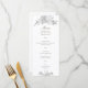 Una elegante y sofisticada pieza de acompañamiento formal de invitación a la boda: la carta del menú, que presenta una caligrafía elegante con delicadas floridas y un fondo blanco de marfil, así como un falso acento floral grabado en relieve con peonías de declaración y otras flores de boda y vegetación. Esta carta clásica tradicional y formal de boda es una encantadora elección para parejas que aman el arte, los diseños artísticos, el arte único y original y los diseños formales y tradicionales de los bodas. Personalizar cada línea de texto. Elementos coincidentes disponibles.