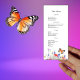 Sumérjase en un universo de un romántico romance con nuestro encantador menú de mariposa acuarela y Boda de flores silvestres. Diseñado para cautivar los sentidos y evocar sentimientos de alegría y asombro, este menú es un verdadero reflejo de la belleza de la naturaleza y de la magia del amor. En un contexto de flores de color blanco prístino y delicado florecen en un caleidoscopio de colores, infundiendo la escena con energía y vitalidad vibrantes. Cada pétalo está pintado con cariño, capturando la esencia de un jardín floreciente con todo su esplendor. Al contemplar los intrincados motivos florales, casi se percibe la suave brisa que recorre el follaje y el aroma de las flores silvestres que penetra en el aire. Las mariposas revolotean con elegancia entre las flores, con sus alas pintadas en suaves tonos pastel que le dan un toque caprichoso al diseño. Simbolizando la transformación y la fugaz belleza de la naturaleza, estas criaturas etéreas le dan un aire de encanto a la escena, invitando a los invitados a embarcarse en un viaje de amor y asombro. La elegante tipografía de escritura negra aporta un toque de sofisticación al diseño caprichoso, guiando a los huéspedes a través de una deliciosa experiencia culinaria con una gracia sin esfuerzo. La sencillez del diseño permite brillar la belleza natural de los elementos botánicos, creando una armoniosa mezcla de moda boho y elegancia intemporal. Este menú boda atrae a los adultos que aprecian la belleza de la naturaleza y el encanto de un romántico jardín. Habla con los que buscan una celebración boda, encantadora y refinada, donde cada detalle está impregnado de asombro y deleite. Ya sea que esté planeando una boda bohemia o una elegante aventura al aire libre, nuestro menú de mariposas acuarelas y Bodas de flores silvestres seguro cautivará a los huéspedes y les dará el tono perfecto para una experiencia culinaria inolvidable en medio de la belleza de la naturaleza.