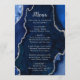 La elegante y glamurosa carta boda presenta un fondo de mármol agate azul marino con falsos toques purpurinas plateados. El texto combina el guión manuscrito y las fuentes sans serif modernas para un aspecto elegante y sofisticado. Esto será perfecto para otoño y bodas de invierno.