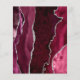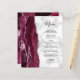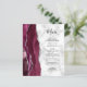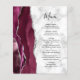 En el extremo izquierdo de este elegante y moderno menú boda se encuentra una pasarela color rojo burdeos bordeada por un falso purpurina plateado. El texto del personalizable combina guiones a mano y tipos de letra de copperplate en negro sobre fondo de mármol gris y blanco. El reverso presenta un diseño de ágata de color burdeos y plata a juego.
