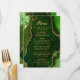 El elegante y glamuroso menú boda presenta un fondo de mármol agate verde con falsos toques de purpurina dorado. El texto combina el guión manuscrito y las fuentes sans serif modernas para un aspecto elegante y sofisticado. Esto será perfecto para otoño y bodas de invierno.