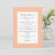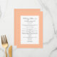 Menú Boda de melocotón Caligrafía Cena elegante para in