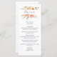 Elegante menú con exquisito detalle acuarela floral en una hermosa mezcla de melocotón, tonos naranja, rubor, coral polvoriento, crema y champán, y delicado monograma floral en la parte posterior con las iniciales de la pareja. Fácil de rellenar la plantilla con su nombre, fecha y descripción del menú. Si es necesario, puede utilizar la herramienta de edición y realizar cambios en el estilo, tamaño, posición e incluso color del texto. Volver en color de fondo blanco que se puede cambiar a cualquier otro color que desee utilizando la herramienta de edición. Parte de nuestras colecciones "Peach Floral Delight" con una variedad de productos de coordinación disponibles, incluyendo números de tabla, tarjetas de gráficos de asientos y etiquetas de favores.