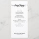 Personalizar fácilmente esta plantilla de menú boda editable con sus nombres, fecha de boda y selecciones de menú. Blanco y negro, moda y clásico, la palabra "Menú" con un interiorismo de cola larga, sofisticación moderna.
