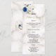 Menú Boda de Monograma de Flores Doradas Azules Caprich