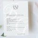 Minimalista menú simple de boda de monograma en blanco y negro: escudo de monograma de arte de línea inspirado en la cosecha con tipografía elegante. Menú para tres bloques: SALAD, ENTRÉES y POSTRES. Introduzca la opción de herramienta de diseño si se necesitan ajustes cuando se agrega el texto del menú. Detrás del texto hay un moderno monograma grande que crea su propia sigilia. Dependiendo de la letra que figure en el monograma, podría necesitar algún ajuste. Introduzca la herramienta de diseño para mover las letras a su gusto.