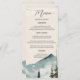 Disfrute de la tranquilidad de la naturaleza con nuestro menú Boda Watercolor Mountains y Pines. La carta, elaborada para los que aprecian la majestuosidad del exterior, es un complemento ideal para un boda salvaje o de montaña. La carta boda presenta una hermosa decoración acuática con pinos de montaña y pinos verdes. Los tonos fríos del azul, el verde y el marrón terrenal transportan a los huéspedes al instante a un paisaje sereno de montaña. En la parte delantera del menú encontrarás una fuente limpia y fácil de leer, donde podrás personalizar los detalles de tu fiesta boda.