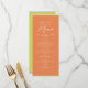 Ilumina tus mesas de recepción con este menú de boda en verde cítrico y naranja intenso, diseñado en una vibrante paleta moderna inspirada en las tendencias Citrus Green, Going Bold y Sunset Glow 2026. La elegante tipografía, un motivo de corazón dorado y una disposición minimalista y limpia crean una presentación fresca y elegante para tu cena de boda.