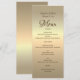 Menú de boda de papel de oro metálico minimalista y elegante con letra moderna y chic.
