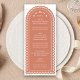 Si estás soñando con una elegante boda en otoño, esta carta es para ti. Este romántico menú estilo arco boda presenta un diseño delicado que recuerda a flores y hojas flameantes y a una hermosa tipografía. El color de la terracota crea una rica calidez de tierra, que complementa los colores naturales de la temporada de otoño.