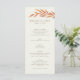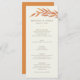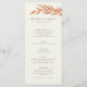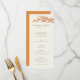 En este menú de la recepción de bodas de otoño encontrará un naranja con arcos suaves y una rama arbolada que enmarca el menú de la cena con una tipografía elegante y fácil de personalizar. Personalice este menú aún más cambiando el color de fondo del marfil suave al color de su elección y añada su foto de compromiso favorita al reverso para una invitación verdaderamente única.