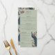 Menú Boda de pájaro de pavo real verde sabio